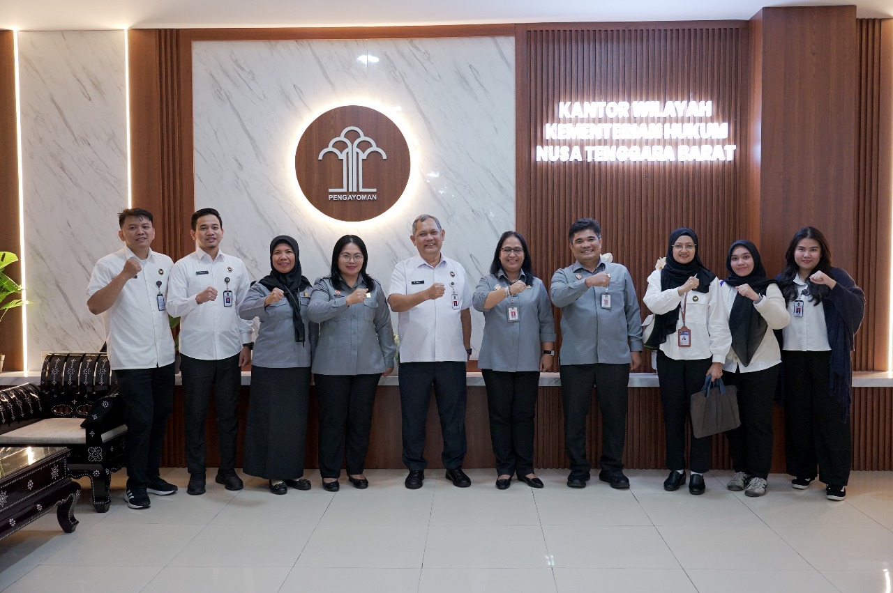 Mataram – Kepala Kantor Wilayah Kementerian Hukum Nusa Tenggara Barat, I Gusti Putu Milawati, beserta jajaran menerima kunjungan kerja Tim Kerja Asisten Deputi Koordinasi Menteri Bidang Hukum dan Keadilan Restoratif Kementerian Koordinator Bidang Hukum, HAM, Imigrasi, dan Pemasyarakatan (Kemenko Kumham Imipas) di Kantor Wilayah Kemenkum NTB, Selasa (11/11).