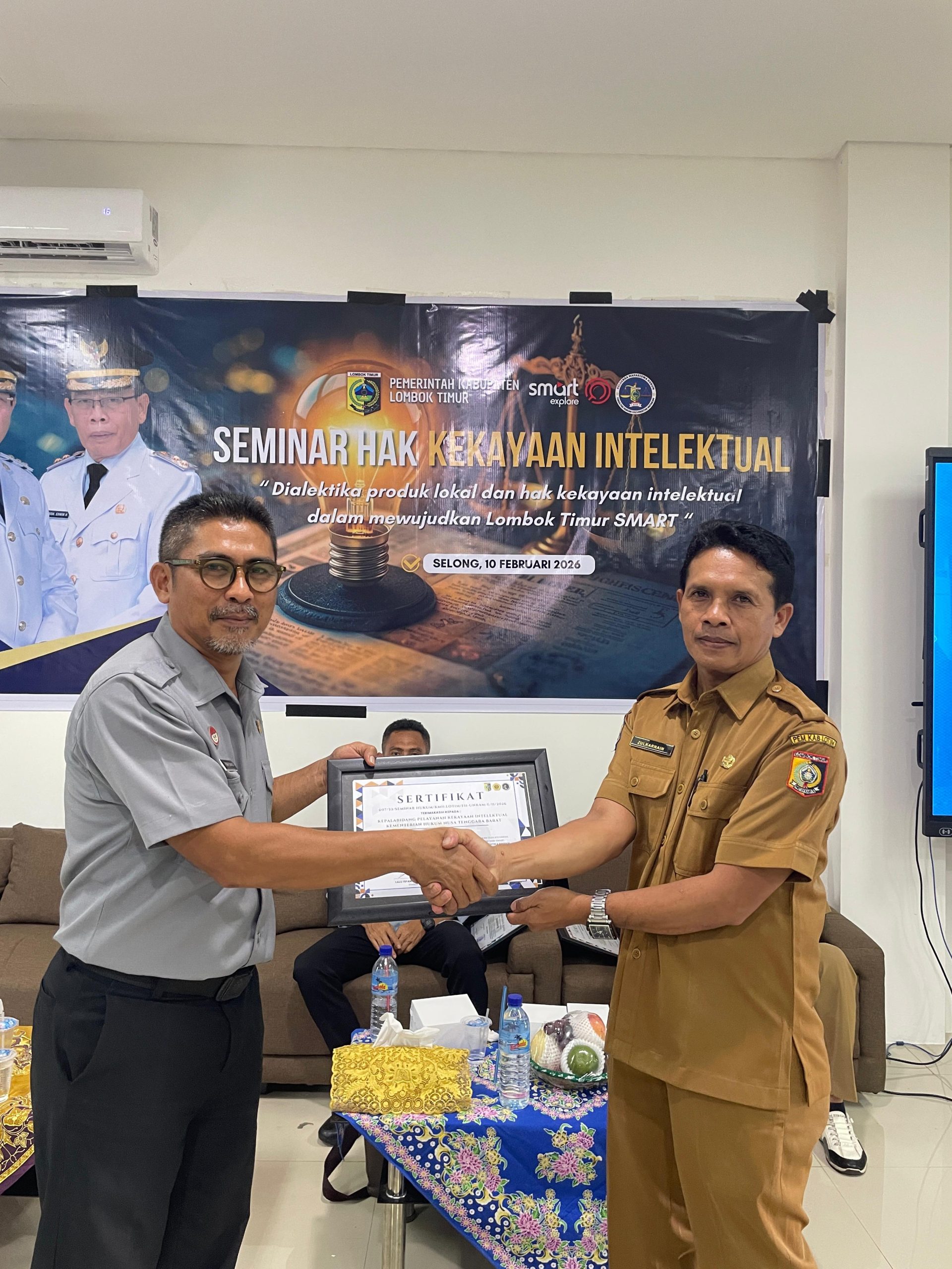 Lombok Timur – Kantor Wilayah Kementerian Hukum Nusa Tenggara Barat (Kanwil Kemenkum NTB) berpartisipasi sebagai narasumber dalam Seminar Hak Kekayaan Intelektual bertema “Lokal yang Dilindungi, Global yang Dituju: Dialektika Produk Lokal dan Hak Kekayaan Intelektual dalam Mewujudkan Lombok Timur Smart” yang diselenggarakan di Aula PLUT Lombok Timur, Selasa (10/2). Kegiatan yang diinisiasi Keluarga Mahasiswa Hukum Lombok Timur Fakultas Hukum Universitas Mataram ini diikuti pelaku UMKM, pegiat seni, kreator lokal, serta mahasiswa dengan antusias.