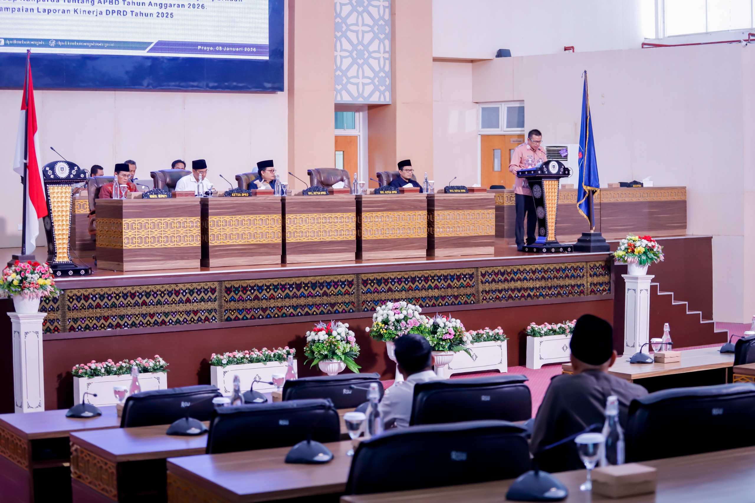 LOTENG—DPRD Lombok Tengah (Loteng) menyampaikan laporan kinerja selama tahun sidang 2025 dalam Rapat Paripurna yang digelar pada Kamis (8/01/2026).