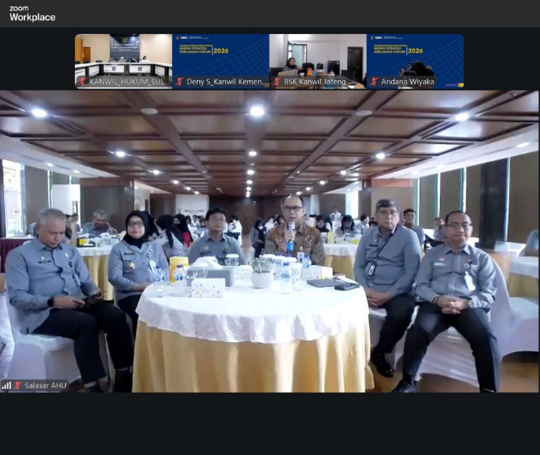 Mataram – Kantor Wilayah Kementerian Hukum Nusa Tenggara Barat (Kanwil Kemenkum NTB) mengikuti kegiatan Sosialisasi Pedoman Teknis Kegiatan Badan Strategi Kebijakan (BSK) Hukum Tahun 2026 yang diselenggarakan secara hybrid pada Selasa (10/1) di Ruang ZI Kanwil Kemenkum NTB. Kegiatan ini menjadi momentum penguatan sinergi, penyamaan persepsi, serta komitmen bersama dalam mewujudkan kebijakan hukum yang berkualitas, berdampak, dan berbasis bukti di lingkungan Kementerian Hukum.