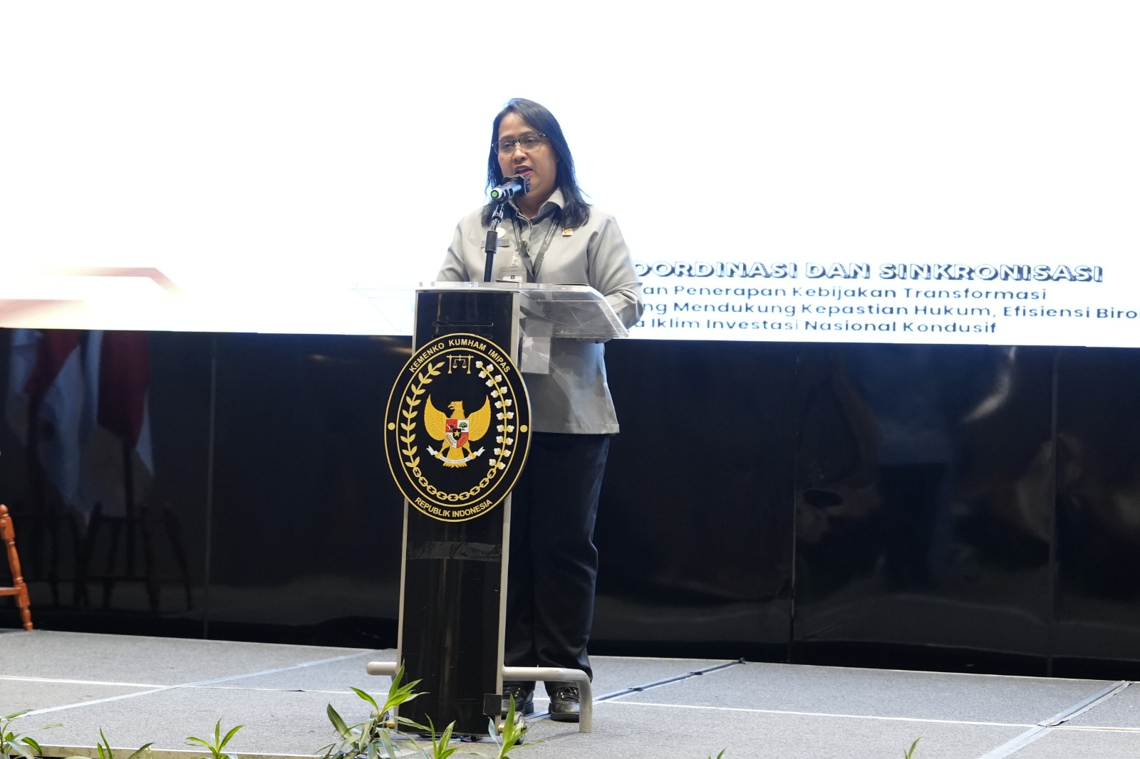Jakarta – Kepala Kantor Wilayah Kementerian Hukum Nusa Tenggara Barat (Kanwil Kemenkum NTB), I Gusti Putu Milawati memimpin pembacaan sekaligus penyerahan Hasil Rekomendasi dalam Rapat Koordinasi dan Sinkronisasi Perumusan Penerapan Kebijakan Transformasi Tata Kelola Regulasi yang Mendukung Kepastian Hukum, Efisiensi Birokrasi, serta Iklim Investasi Nasional Kondusif pada Senin (17/11).