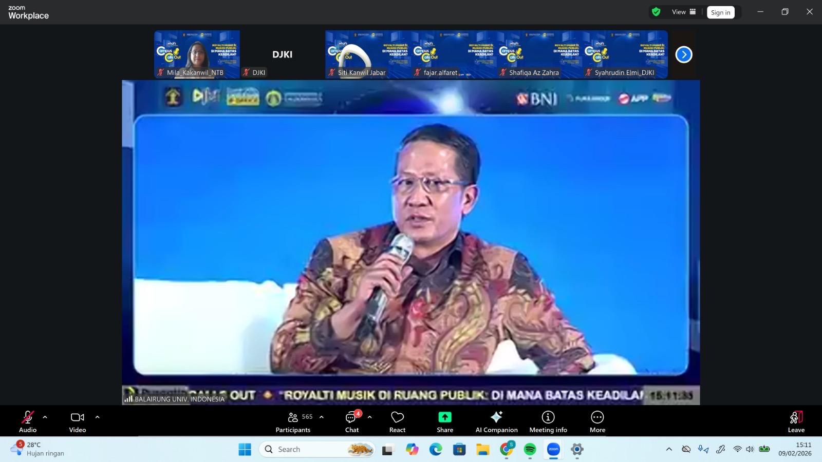 Mataram – Kementerian Hukum Republik Indonesia menyelenggarakan kegiatan Campus Calls Out bertajuk “Royalti Musik di Ruang Publik: Di Mana Batas Keadilan?” yang berlangsung di Balairung Universitas Indonesia dan diikuti secara daring oleh ribuan peserta, Senin (9/2). Kantor Wilayah Kemenkum NTB turut berpartisipasi melalui jajaran Divisi Pelayanan Hukum bersama tim pelayanan Kekayaan Intelektual.