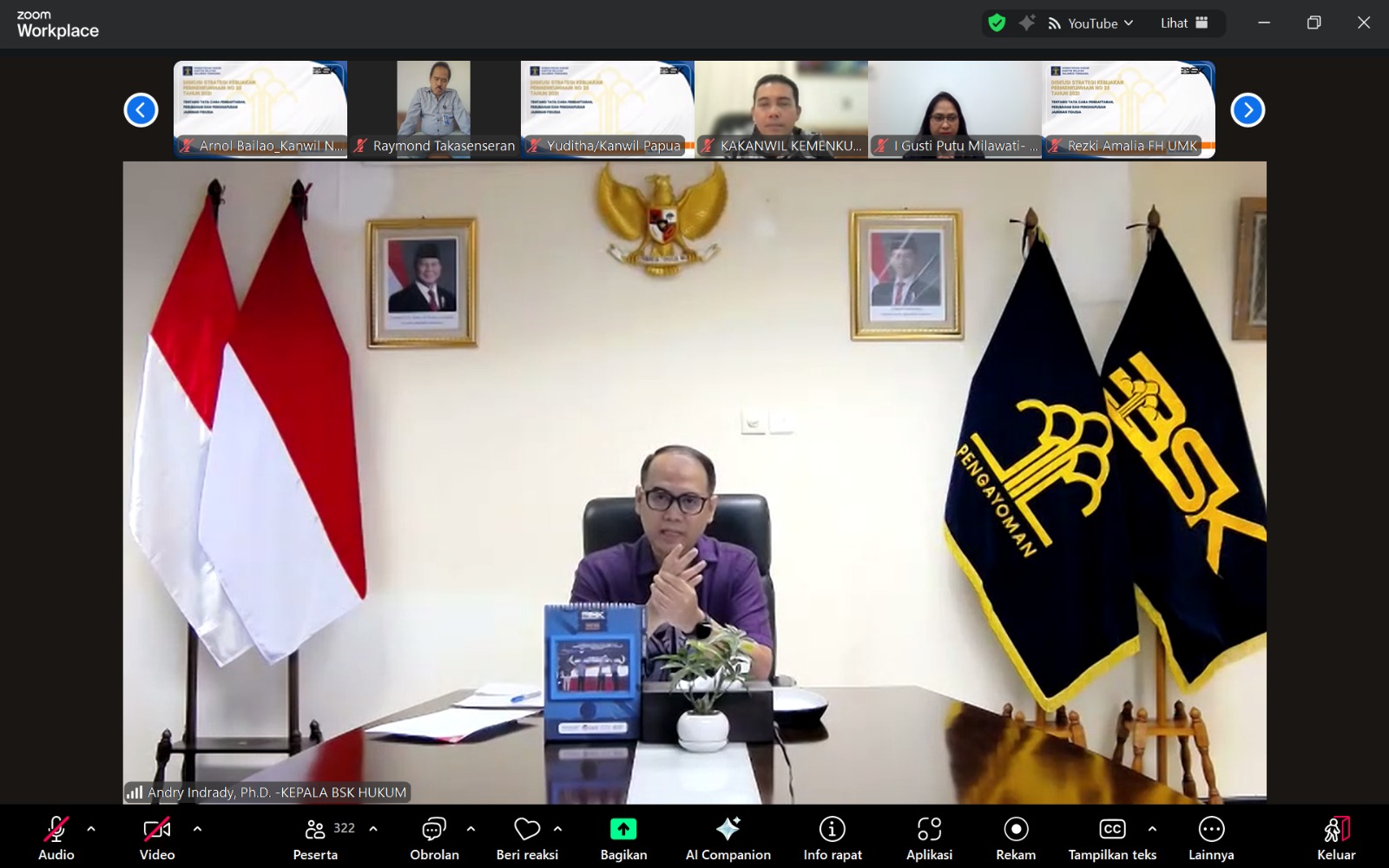 Mataram – Kantor Wilayah Kementerian Hukum Nusa Tenggara Barat (Kanwil Kemenkum NTB) turut berpartisipasi dalam Diskusi Publik dan Evaluasi Implementasi Jaminan Fidusia yang digelar oleh Kanwil Kemenkum Sulawesi Tenggara melalui Zoom Meeting, Kamis (16/10). Kegiatan yang mengangkat tema “Evaluasi Implementasi, Dinamika Regulasi, dan Tantangan Pelaksanaan Jaminan Fidusia Pasca Permenkumham Nomor 25 Tahun 2021” ini diikuti oleh Kepala Kantor Wilayah Kemenkum NTB, I Gusti Putu Milawati, beserta jajaran.