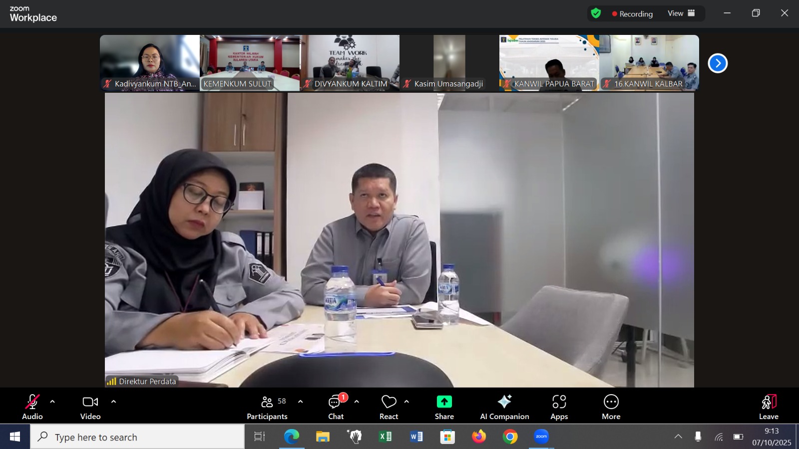 Mataram – Kantor Wilayah Kementerian Hukum Nusa Tenggara Barat (Kanwil Kemenkum NTB) melalui Kepala Divisi Pelayanan Hukum, Anna Ernita dan Pelaksana pada Bidang Pelayanan Administrasi Hukum Umum (AHU) mengikuti Rapat Koordinasi Pelaksanaan Tugas dan Fungsi Direktorat Perdata secara virtual melalui aplikasi Zoom Meeting pada Selasa (07/10).