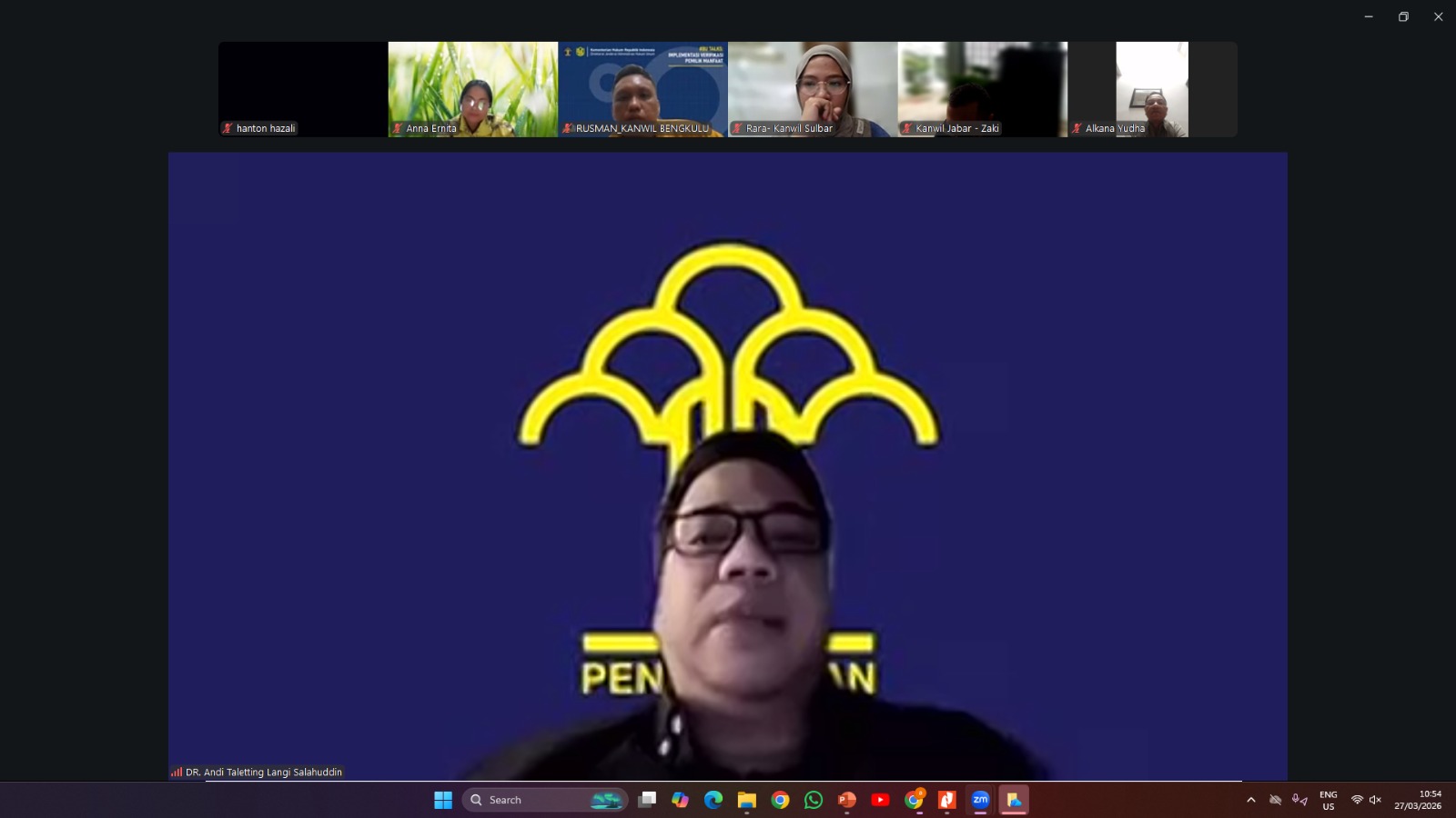 Mataram – Kantor Wilayah Kementerian Hukum Nusa Tenggara Barat (Kanwil Kemenkum NTB) mengikuti Webinar Verifikasi Matriks Komitmen Target Mandiri dan Kesiapan Operasional AHU Link Pendaftaran Perseroan Perorangan Tahun 2026 yang diselenggarakan oleh Direktorat Badan Usaha secara virtual, Jumat (27/3). Kegiatan ini diikuti oleh Kepala Divisi Pelayanan Hukum Anna Ernita, Kepala Bidang Pelayanan Administrasi Hukum Umum, serta jajaran pelaksana pada bidang Administrasi Hukum Umum.