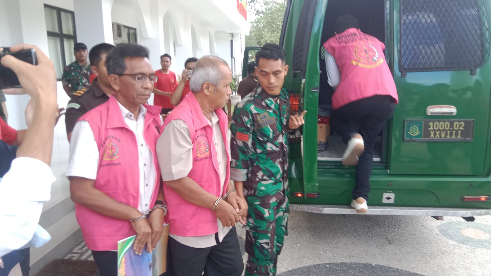 Usai menjalani pemeriksaan, ketiganya langsung digiring menuju mobil tahanan dengan mengenakan rompi khusus dan dipindahkan ke Rutan Kuripan untuk menjalani masa penahanan.