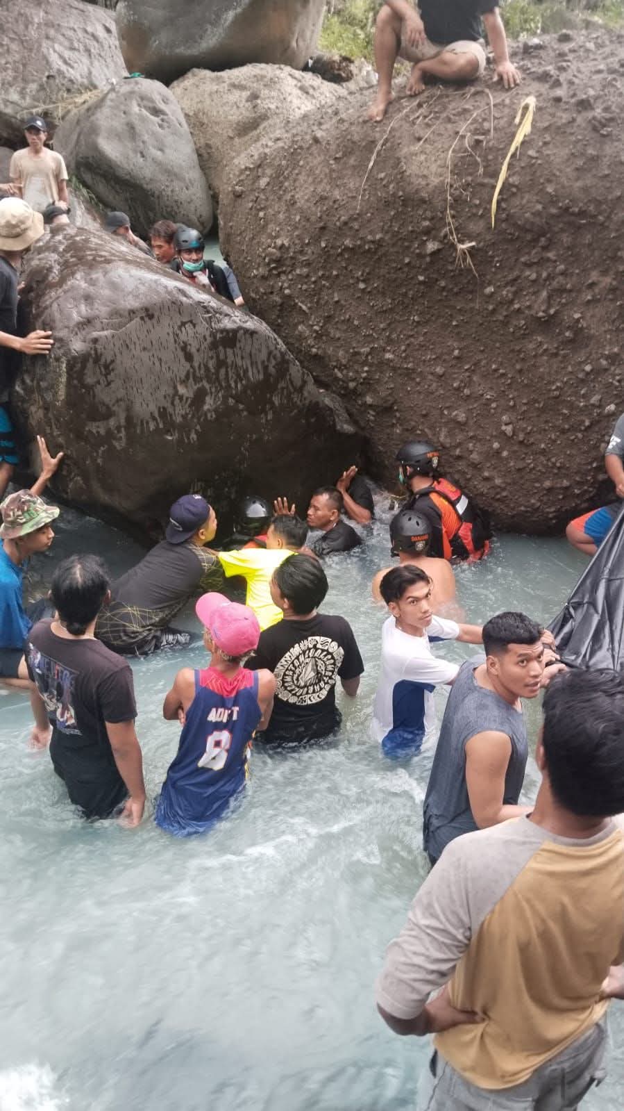 Alat berat coba dikerahkan untuk membantu evakuasi jenasah perempuan. Seperti diketahui sebelumnya, Lisa dikabarkan hanyut terseret arus sungai saat hendak berwisata di kawasan Tibu Ijo bersama teman laki-lakinya, Minggu (5/4). Selama tiga hari pencarian itu tim SAR gabungunga turun melakukan pencarian dan penyisiran disekitar kawasan wisata dan aliran sungai. (win)