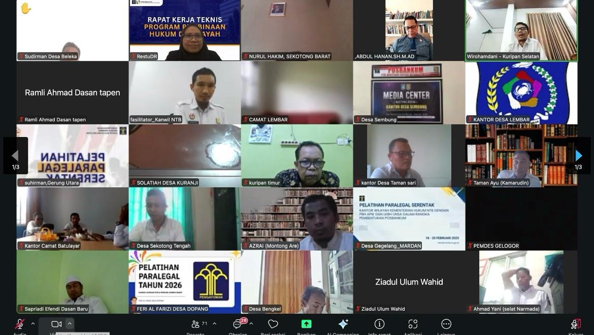 Lombok Barat – Untuk memastikan masyarakat semakin mudah mendapatkan akses bantuan hukum yang berkualitas, Kantor Wilayah Kementerian Hukum Nusa Tenggara Barat membekali para paralegal di Kabupaten Lombok Barat melalui pelatihan intensif yang menitikberatkan pada kemampuan teknis, komunikasi, hingga advokasi di lapangan pada Rabu (11/02).