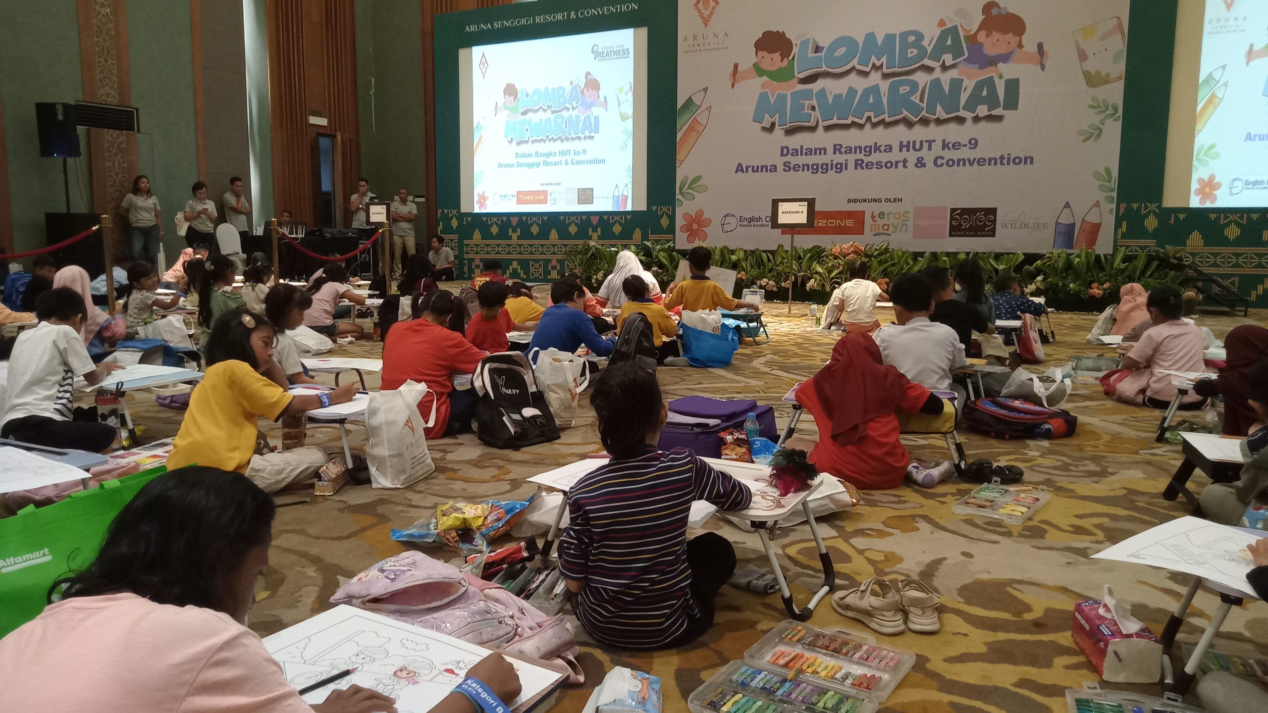 LOBAR—Lomba Mewarnai untuk anak tingkat Playgroup, TK sampai SD digelar kembali Aruna Senggigi Resort & Convention, Minggu (10/8). Ini rangkaian perayaan Anniversary Aruna yang ke 9.