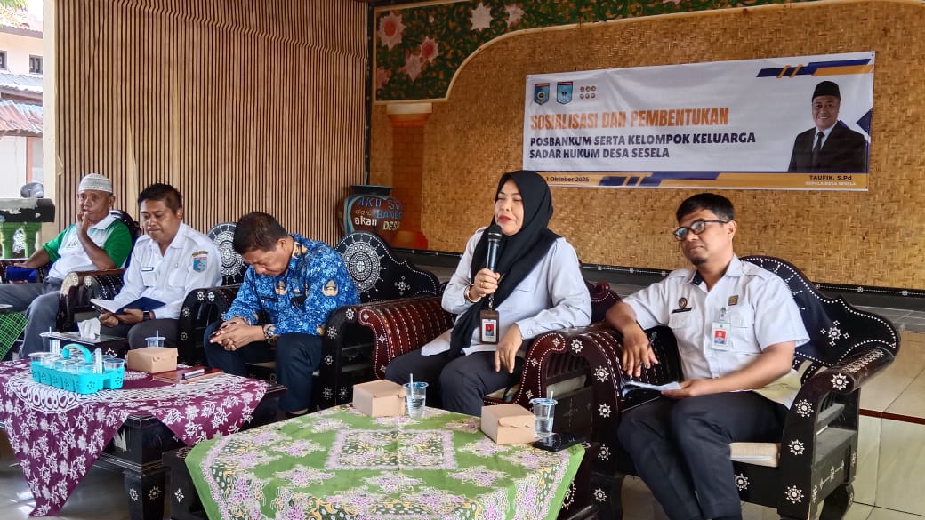 Kegiatan ini mengangkat tema “Pembentukan Kelompok Keluarga Sadar Hukum (Kadarkum) dan Pos Bantuan Hukum Desa (Posbankumdes)” dengan tujuan memperkuat kesadaran hukum masyarakat serta memperluas akses layanan bantuan hukum di tingkat desa.